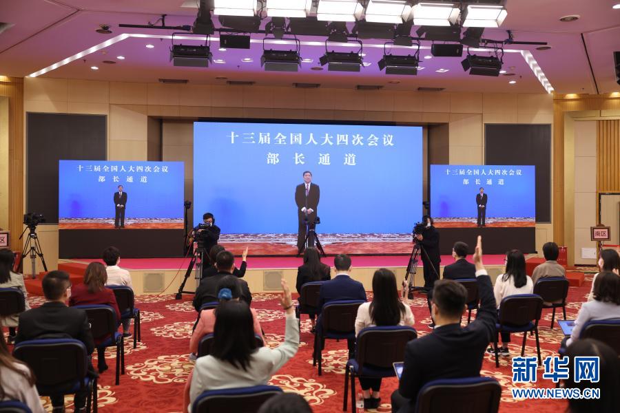 3月5日,第十三屆全國(guó)人民代表大會(huì)第四次會(huì)議舉行首場(chǎng)“部長(zhǎng)通道”采訪(fǎng)活動(dòng)。這是記者在分會(huì)場(chǎng)通過(guò)網(wǎng)絡(luò)視頻方式采訪(fǎng)國(guó)家發(fā)展和改革委員會(huì)主任何立峰。新華社記者 曹燦 攝