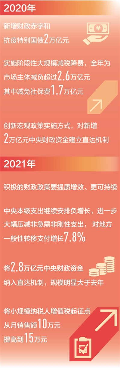 “2021年積極的財政政策要提質(zhì)增效、更可持續(xù),財政工具力度的調(diào)整體現(xiàn)了‘積極’取向,兼顧了‘更可持續(xù)’要求!睆堖B起委員表示,3.2%左右的赤字率與今年國內(nèi)生產(chǎn)總值增長6%以上的目標(biāo)相匹配;已發(fā)專項債政策效應(yīng)還在釋放,減少新增規(guī)模有利于防范法定債務(wù)風(fēng)險;目前地方公共衛(wèi)生、基本民生支出等可通過正常渠道得到財力保障,不再需要發(fā)行特別國債進(jìn)行特殊轉(zhuǎn)移支付。