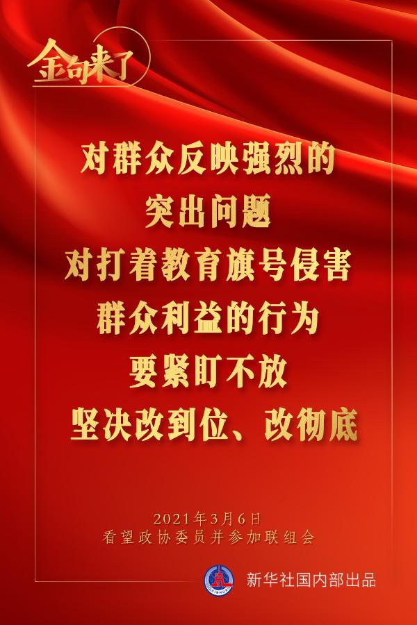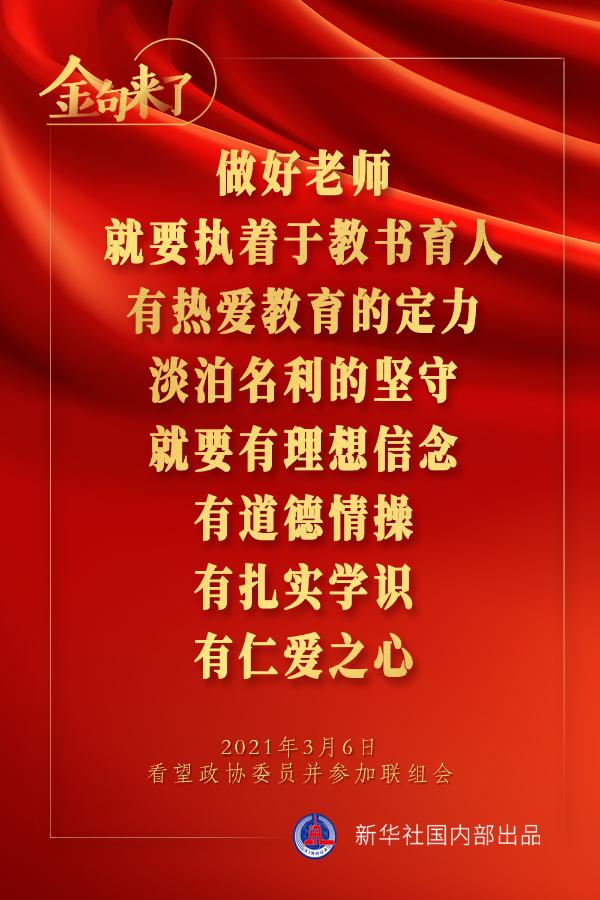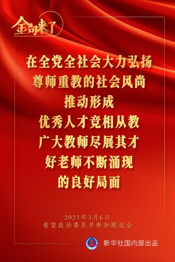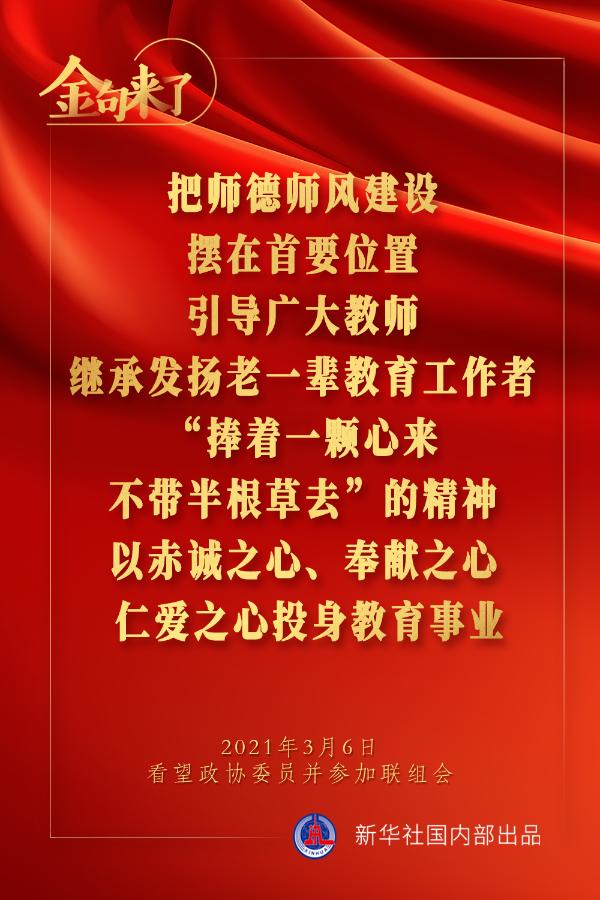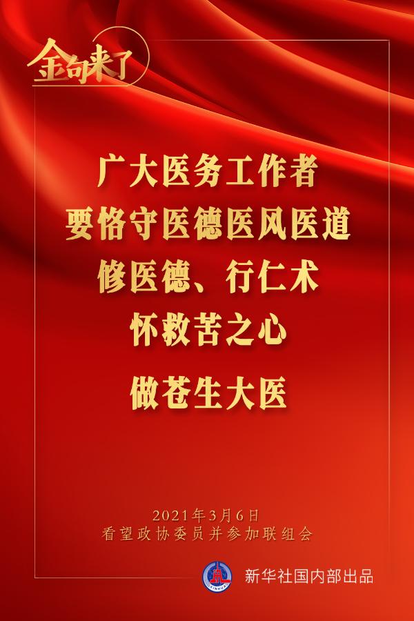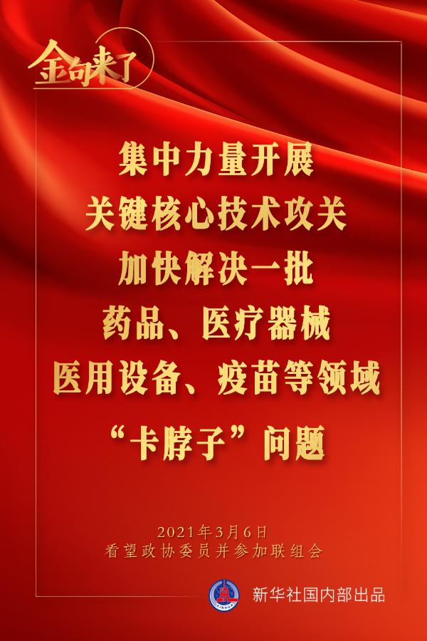 集中力量開(kāi)展關(guān)鍵核心技術(shù)攻關(guān),加快解決一批藥品、醫(yī)療器械、醫(yī)用設(shè)備、疫苗等領(lǐng)域“卡脖子”問(wèn)題;依法嚴(yán)厲打擊醫(yī)鬧和暴力傷醫(yī)行為;有高質(zhì)量的教師,才會(huì)有高質(zhì)量的教育……3月6日下午,習(xí)近平總書(shū)記在看望參加全國(guó)政協(xié)十三屆四次會(huì)議的醫(yī)藥衛(wèi)生界、教育界委員并參加聯(lián)組會(huì)時(shí),講了這些重要觀點(diǎn)。一起來(lái)學(xué)金句。
