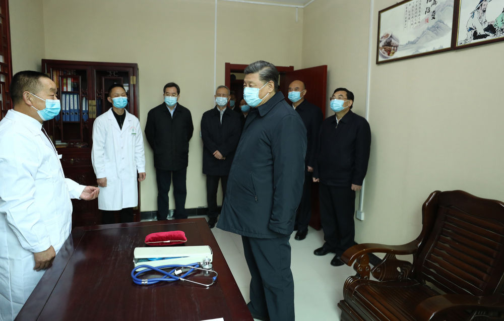 ↑2020年4月21日,習(xí)近平在陜西省安康市平利縣老縣鎮(zhèn)衛(wèi)生院,了解基層衛(wèi)生防疫、醫(yī)療保障工作。