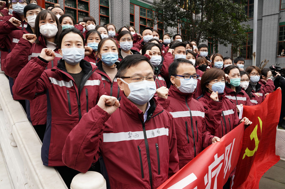 ↑2020年2月7日,四川大學(xué)華西醫(yī)院派出131名隊(duì)員奔赴武漢支援。