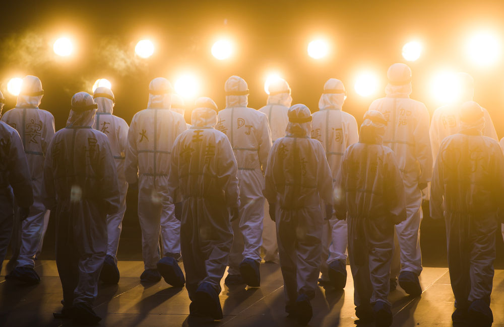 ↑2020年9月11日,由武漢人民藝術(shù)劇院創(chuàng)作的大型原創(chuàng)抗疫話劇《逆行》在武漢中南劇場上演。該劇將醫(yī)務(wù)工作者逆行出征的英雄事跡搬上舞臺,以藝術(shù)的形式弘揚(yáng)偉大的抗疫精神。