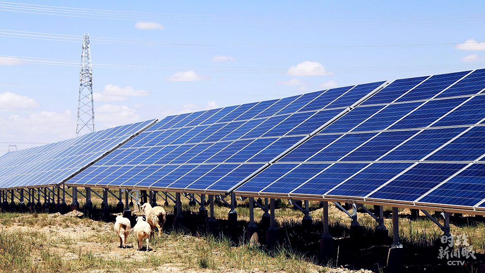 △這是位于青海省海南藏族自治州的塔拉灘光伏產(chǎn)業(yè)園區(qū)。在光伏板的“庇護”下,草場逐漸恢復(fù),羊群也回來了,經(jīng)濟和生態(tài)效益雙豐收。