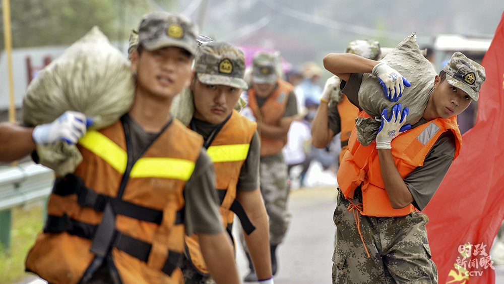 △2020年7月底,巢湖流域進(jìn)入緊急防汛期。中國人民解放軍73021部隊(duì)鐵騎先鋒營(yíng)430名指戰(zhàn)員奔赴一線,扛沙袋加固巢湖大堤。