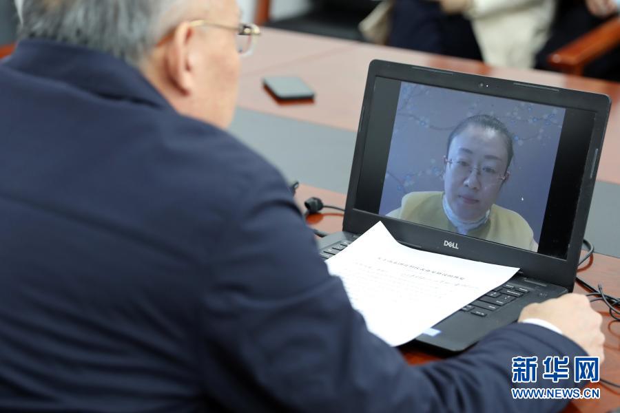 3月7日,全國人大代表、山東省泰安市農(nóng)科院食用菌研究所所長孔怡(屏幕畫面中)同農(nóng)業(yè)農(nóng)村部種業(yè)管理司副司長孫好勤在北京進(jìn)行網(wǎng)絡(luò)視頻連線。這是一次不尋常的兩會“速遞”:3月5日代表提出建議,3月6日建議經(jīng)國務(wù)院辦公廳轉(zhuǎn)到農(nóng)業(yè)農(nóng)村部,3月7日中午就實(shí)現(xiàn)了部門與代表的“云對話”。新華社記者 李木子 攝
