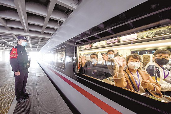 去年3月19日,湖北首批免費復工返崗專列G4318次“點對點”輸送1631名荊州人到廣東返崗。(湖北日報全媒記者 陳勇 攝)