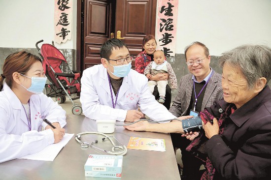 去年11月13日,竹山縣樓臺鄉(xiāng)衛(wèi)生院組織醫(yī)務(wù)人員進村開展“一對一”健康回訪和體檢。(視界網(wǎng) 陳昌榮 張強 攝)