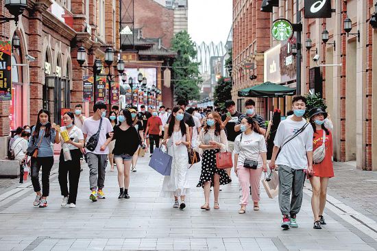 武漢商戶對復工復產(chǎn)信心十足。圖為去年7月,漢街人氣已經(jīng)恢復。 (湖北日報全媒記者 蔡俊 攝)