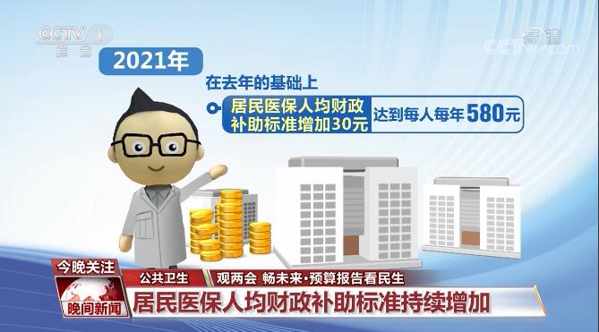 公共衛(wèi)生投入也將強化。預(yù)算報告指出,2021年居民醫(yī)保人均財政補助標準增加30元,達到每人每年580元。對醫(yī)保基金負擔(dān)的新冠病毒疫苗及接種費用給予補助,支持實施居民免費接種政策。