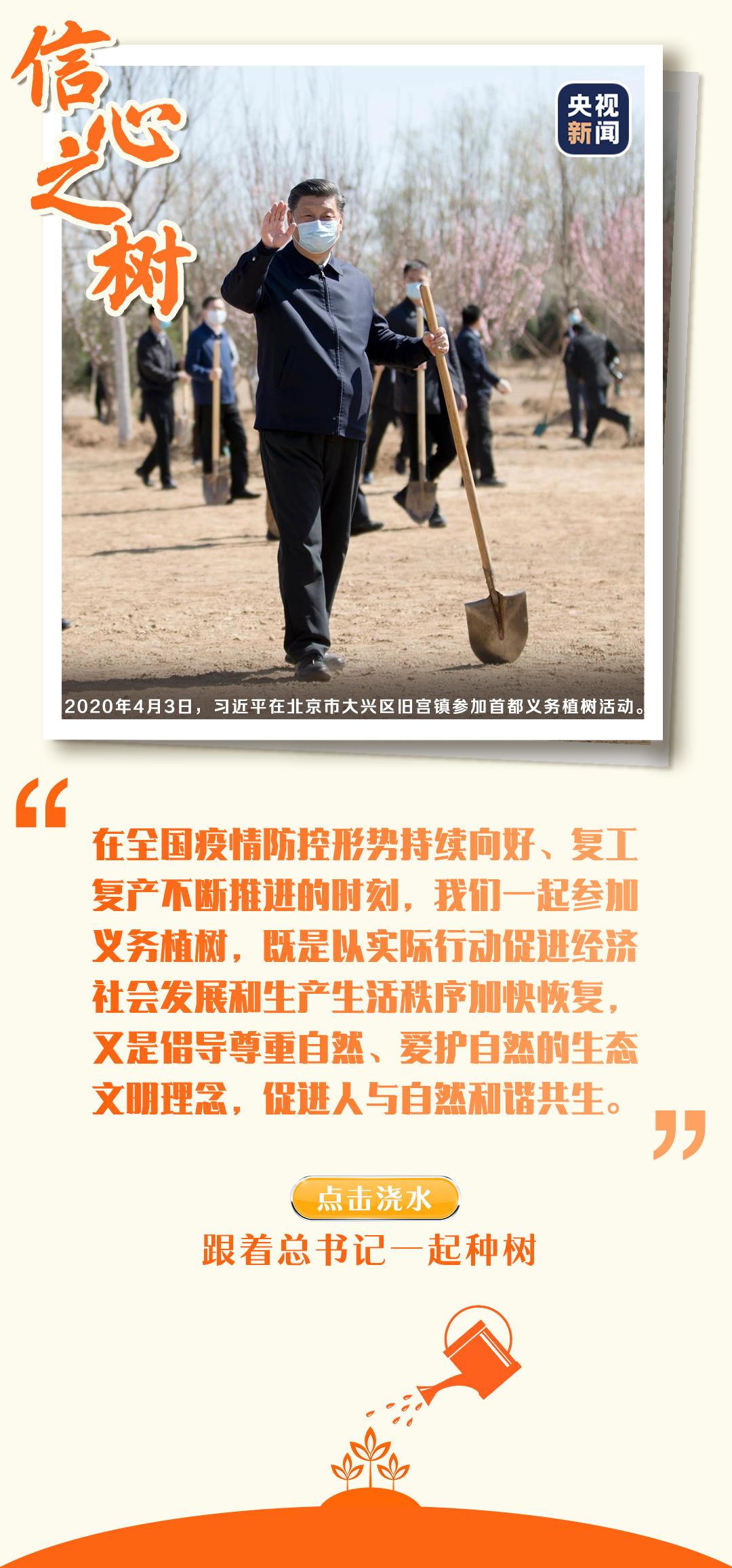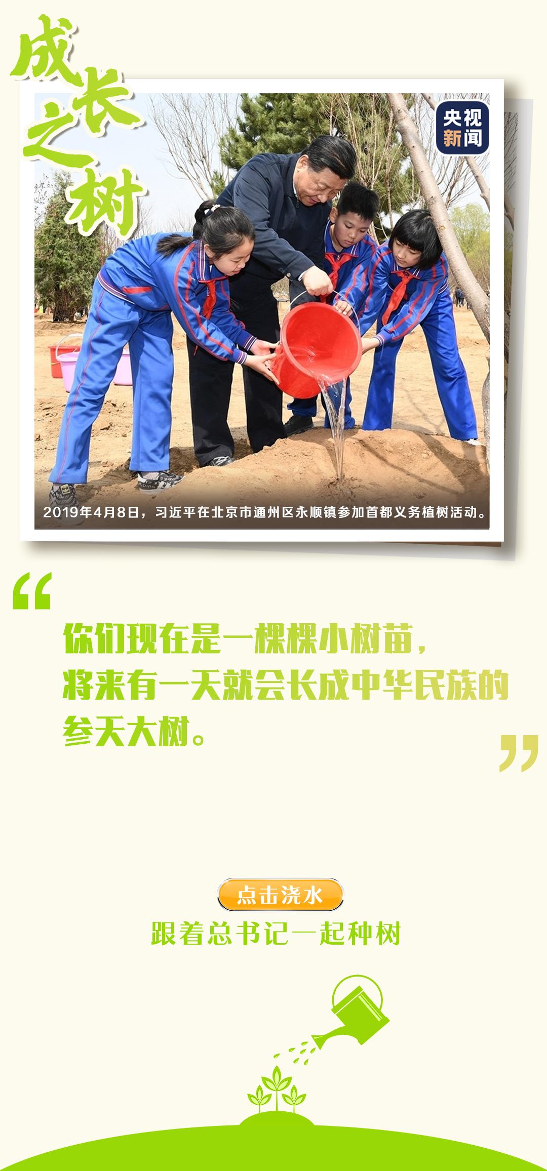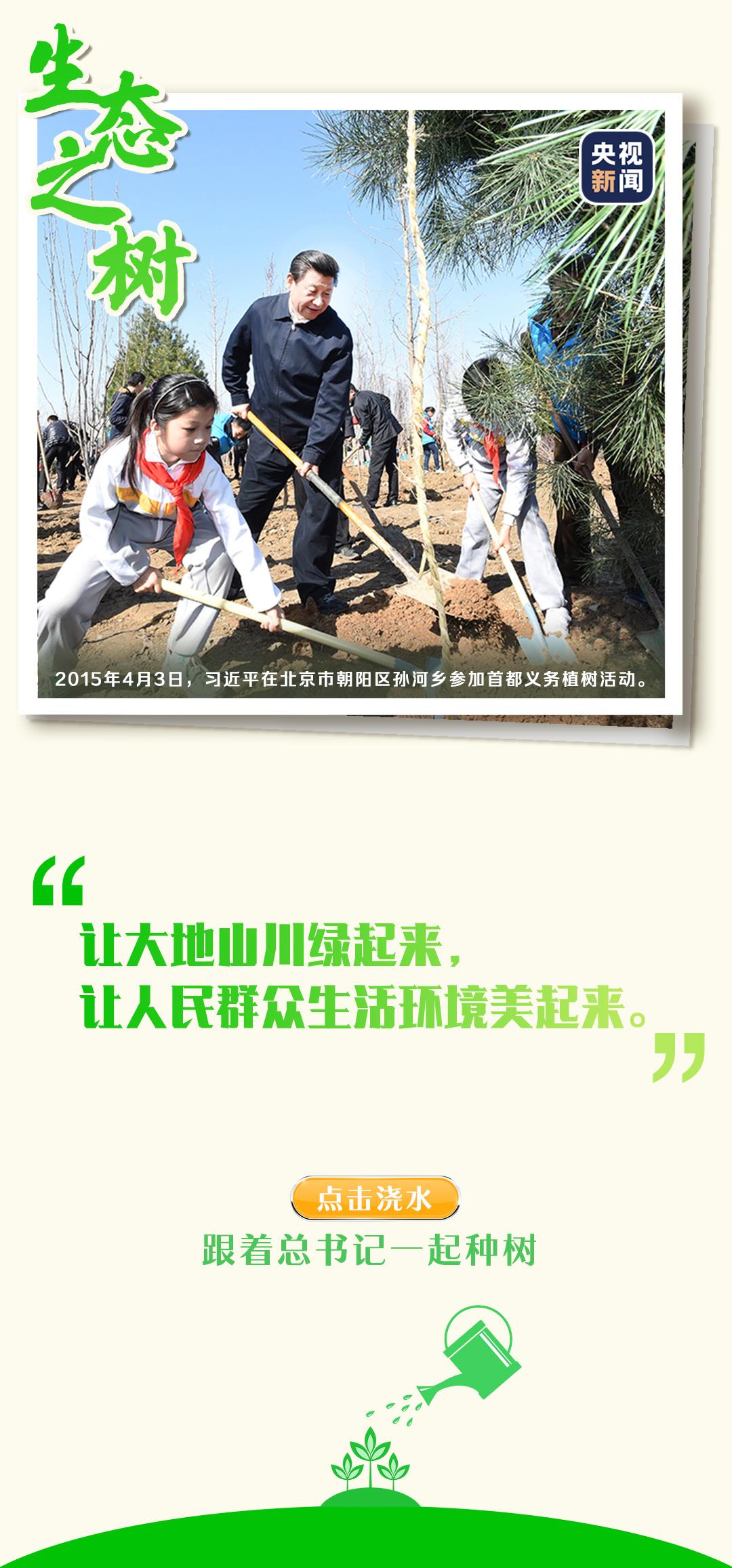 黨的十八大以來(lái),習(xí)近平總書(shū)記每年都參加首都義務(wù)植樹(shù)活動(dòng)。一鍬土,播種的是生機(jī);一桶水,澆灌的是未來(lái)。
