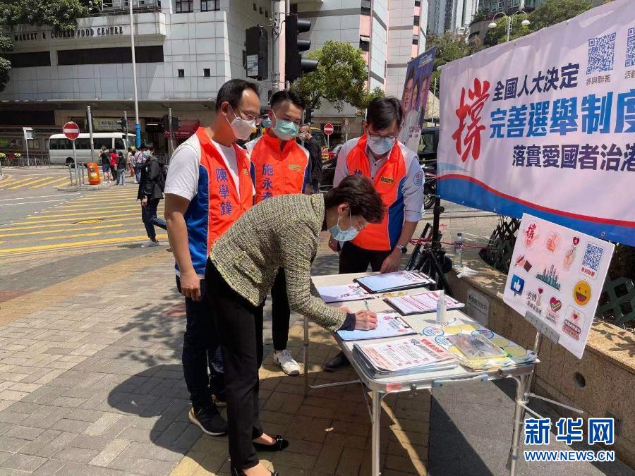 新華社香港3月15日電(記者劉明洋)連日來,“香港各界撐全國(guó)人大決定完善選舉制度連線”在全港各區(qū)擺設(shè)街站,收集市民支持全國(guó)人大決定的簽名。香港特區(qū)行政長(zhǎng)官林鄭月娥15日前往位于港鐵堅(jiān)尼地城站的街站簽名,支持落實(shí)“愛國(guó)者治港”原則,并為街站工作人員打氣加油。