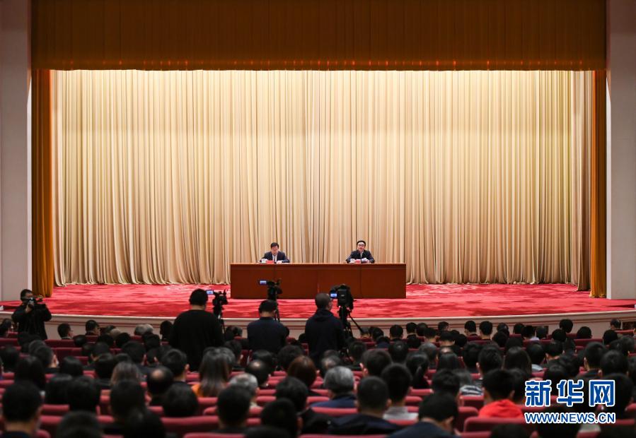 3月16日,中央宣講團(tuán)成員、中央黨史和文獻(xiàn)研究院院長(zhǎng)曲青山(右)在報(bào)告會(huì)上作宣講報(bào)告。新華社記者 陳曄華 攝