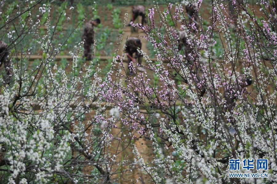 貴州省畢節(jié)市七星關(guān)區(qū)人武部組織民兵到對口幫扶的海子街鎮(zhèn)幫助村民干農(nóng)活(2020年3月18日攝)。新華社發(fā)(王慶澤 攝)