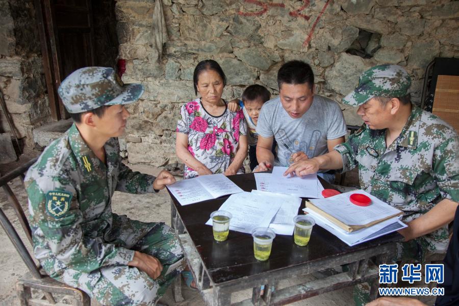 湖北省恩施軍分區(qū)“131”扶貧小分隊到對口幫扶的紅土鄉(xiāng)天落水村村民家中入戶核實相關(guān)情況(2018年7月4日攝)。新華社發(fā)(王海 攝)