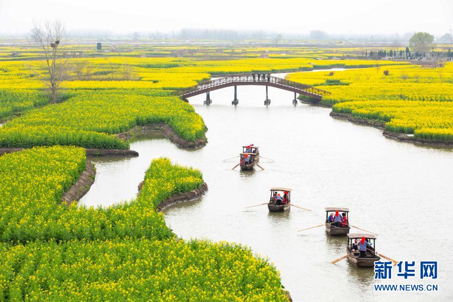 3月18日,游客在興化市千垛景區(qū)乘船游覽(無人機(jī)照片)。 當(dāng)日,中國·興化千垛菜花旅游節(jié)在江蘇興化千垛景區(qū)拉開帷幕,吸引眾多游客前來踏青賞花。本屆菜花旅游節(jié)將持續(xù)到5月8日,期間還將舉行美食大賽、農(nóng)產(chǎn)品展示等活動(dòng)。 新華社發(fā)(孟德龍 攝)