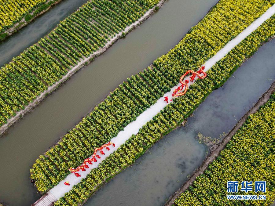 3月18日,人們?cè)谂d化市千垛景區(qū)進(jìn)行舞龍表演(無人機(jī)照片)。 當(dāng)日,中國·興化千垛菜花旅游節(jié)在江蘇興化千垛景區(qū)拉開帷幕,吸引眾多游客前來踏青賞花。本屆菜花旅游節(jié)將持續(xù)到5月8日,期間還將舉行美食大賽、農(nóng)產(chǎn)品展示等活動(dòng)。 新華社發(fā)(顧繼紅 攝)