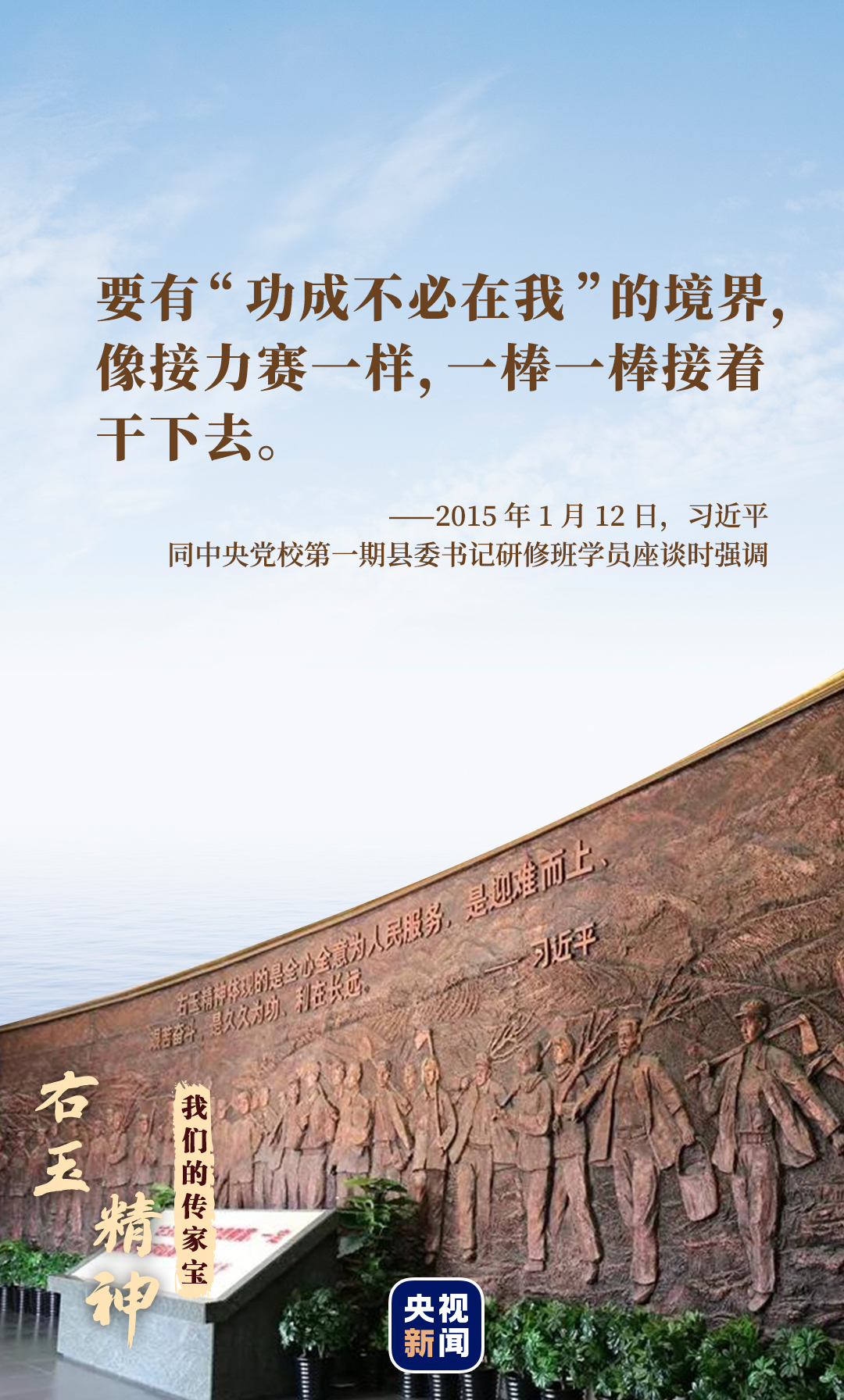 2015年1月,習(xí)近平總書記在同中央黨校第一期縣委書記研修班學(xué)員座談時,講到了右玉歷屆縣委帶領(lǐng)人民群眾治沙造林的故事,并要求大家要有“功成不必在我”的境界,像接力賽一樣,一棒一棒接著干下去。