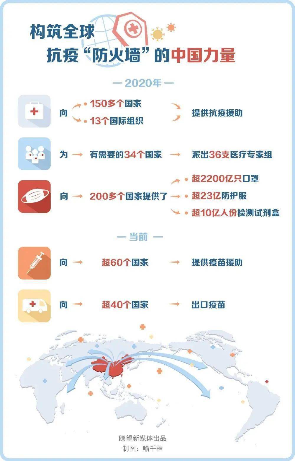 世界聽到中國聲音,更見到中國行動。2020年,中國向150多個國家和13個國際組織提供抗疫援助,向有需要的34個國家派出36支醫(yī)療專家組,向200多個國家提供了超過2200億只口罩、23億件防護(hù)服、10億人份檢測試劑盒。當(dāng)前,中國已向超過60個國家提供疫苗援助,向超過40個國家出口疫苗,扎實履行將疫苗作為全球公共產(chǎn)品的大國承諾。