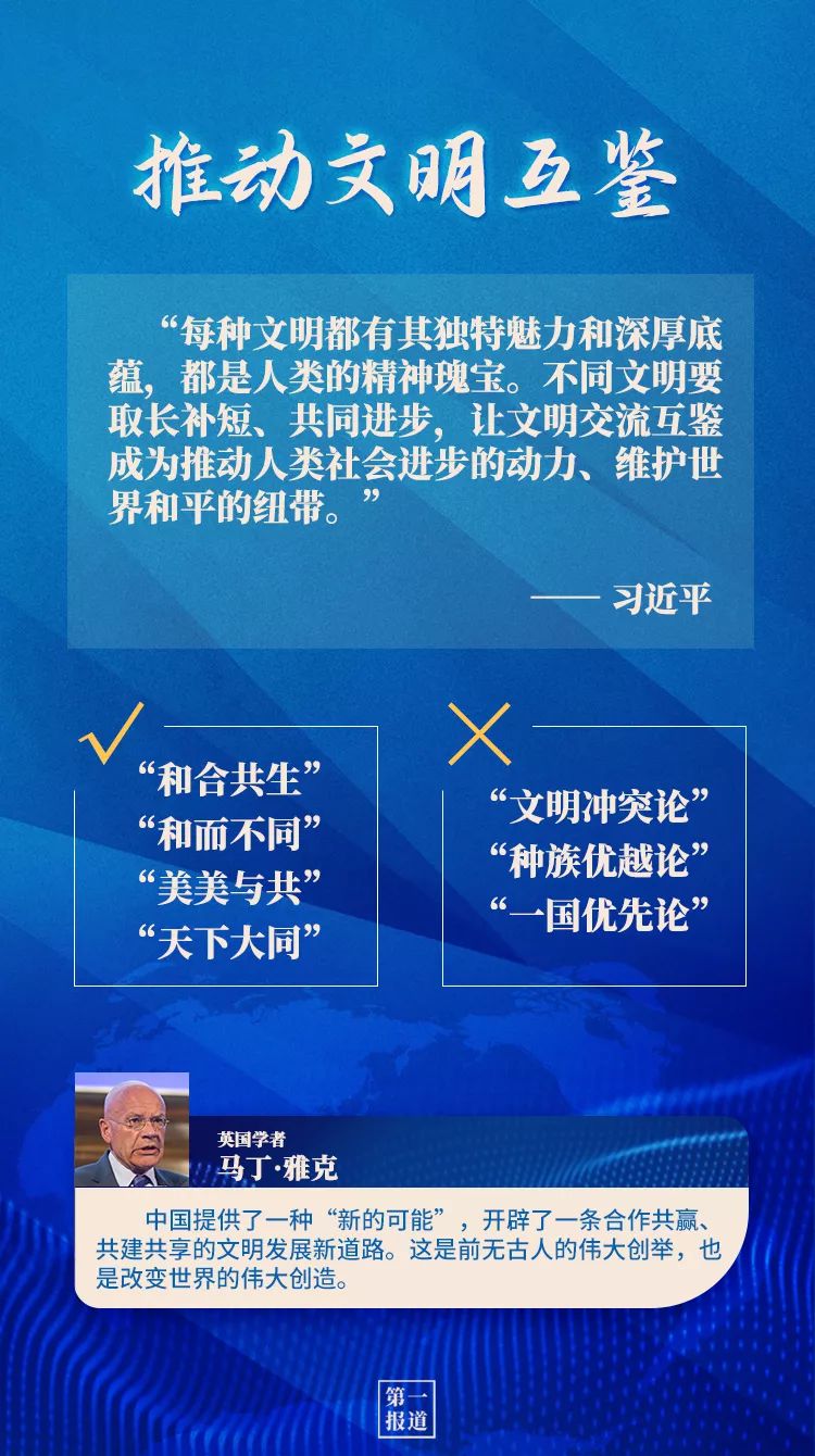 “應(yīng)對共同挑戰(zhàn)、邁向美好未來,既需要經(jīng)濟(jì)科技力量,也需要文化文明力量!泵鎸Α拔拿鲀(yōu)越論”“文明沖突論”等鼓噪,面對“政治病毒”的侵襲、種族主義等雜音,世界格外需要和合共生的文明力量。