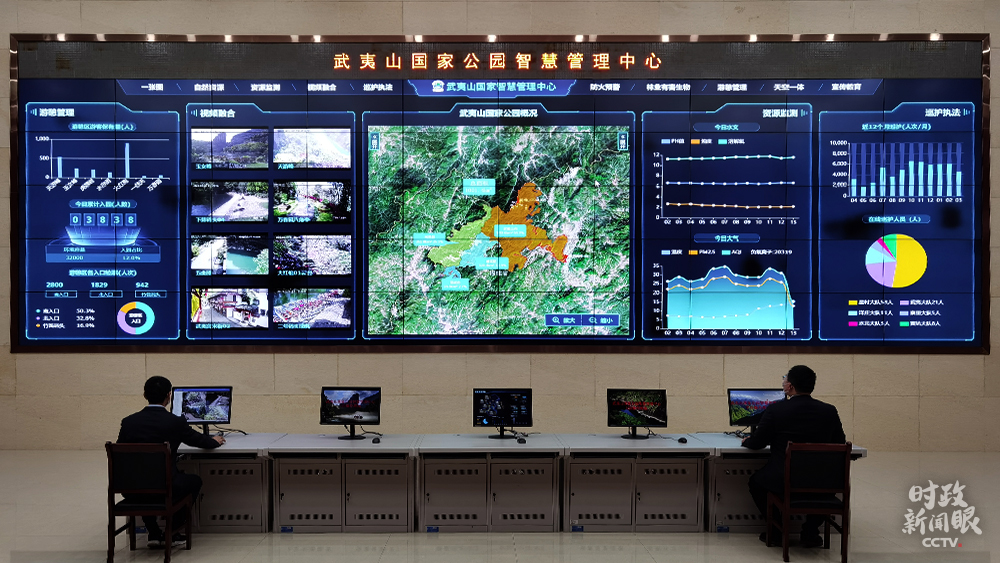智慧管理中心是武夷山國家公園的“智慧大腦”,綜合運用互聯(lián)網(wǎng)、物聯(lián)網(wǎng)、衛(wèi)星遙感等信息技術(shù),通過大數(shù)據(jù)采集和分析,可以實時掌握當(dāng)日入園人數(shù),監(jiān)測預(yù)警水質(zhì)、大氣、森林防火等情況。