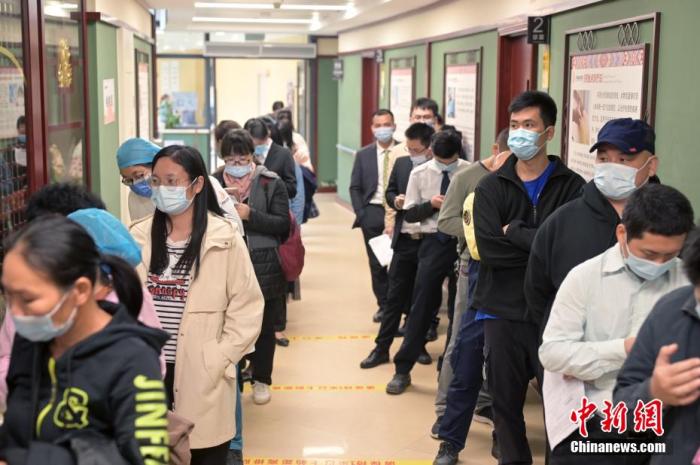 資料圖:接種區(qū)外,市民排隊(duì)等待接種疫苗。 俞靖 攝