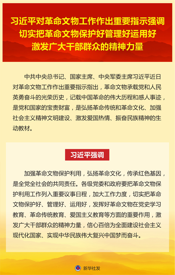 習(xí)近平對革命文物工作作出重要指示強(qiáng)調(diào) 切實把革命文物保護(hù)好管理好運用好 激發(fā)廣大干部群眾的精神力量
