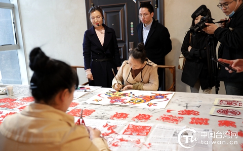 文物館邀請(qǐng)的民間藝術(shù)家現(xiàn)場(chǎng)剪紙、繪畫。(中國(guó)臺(tái)灣網(wǎng) 李杰 攝)