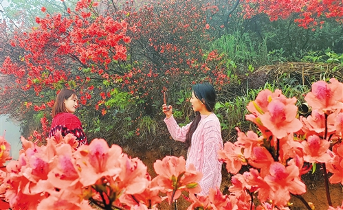 湖南省常寧市天堂山杜鵑花競(jìng)相綻放,吸引眾多游人前來游玩,感受愜意的春日氣息。周秀魚春攝