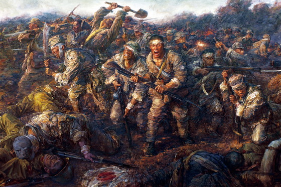 無論時代如何發(fā)展,我們都要鍛造舍生忘死、向死而生的民族血性。在朝鮮戰(zhàn)場上,志愿軍將士面對強大而兇狠的作戰(zhàn)對手,身處惡劣而殘酷的戰(zhàn)場環(huán)境,拋頭顱、灑熱血,以“鋼少氣多”力克“鋼多氣少”,譜寫了驚天地、泣鬼神的雄壯史詩。志愿軍將士冒著槍林彈雨勇敢沖鋒,頂著狂轟濫炸堅守陣地,用胸膛堵槍眼,以身軀作人梯,抱起炸藥包、手握爆破筒沖入敵群,忍饑受凍絕不退縮,烈火燒身巋然不動,敢于“空中拼刺刀”。在他們中涌現出楊根思、黃繼光、邱少云等30多萬名英雄功臣和近6000個功臣集體。英雄們說:我們的身后就是祖國,為了祖國人民的和平,我們不能后退一步!這種血性令敵人膽寒,讓天地動容!