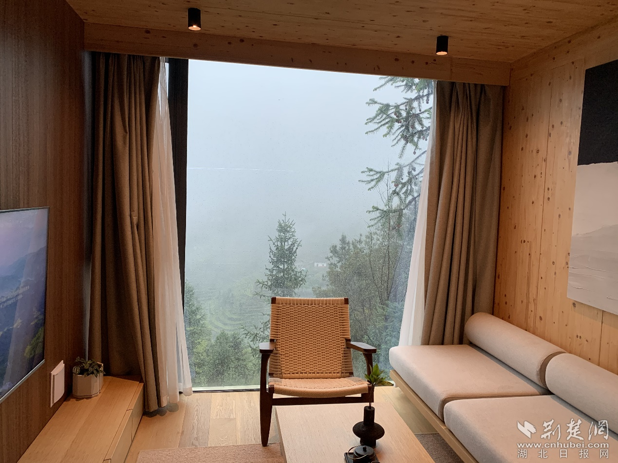 圖為:木屋度假酒店“千山云舍”內(nèi)景