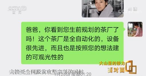 王婷:我和父親一樣,報(bào)喜不報(bào)憂(yōu),在關(guān)鍵的節(jié)點(diǎn)我會(huì)給他發(fā)信息,比如茶場(chǎng)建成了,品牌出來(lái)了,我去接受全國(guó)脫貧攻堅(jiān)表彰了,都會(huì)給他發(fā)信息,但困難沒(méi)跟他講過(guò),我想他也知道,我一直覺(jué)得我在這做任何事情,好像他都在支持著我、看著我。