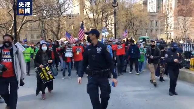 當?shù)貢r間4月4日,美國紐約市上萬群眾走上街頭,抗議近期不斷在紐約市和全美發(fā)生的針對亞裔的種族歧視及暴力事件。