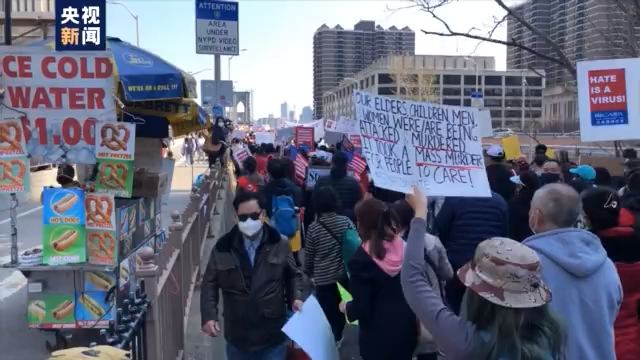 央視記者 徐德智:游行的隊伍是已經(jīng)走上了布魯克林大橋,實際上抗議者希望通過他們今天這個活動,能讓更多人聽到他們的聲音,讓他們能更加重視亞裔團體在美國的安全。