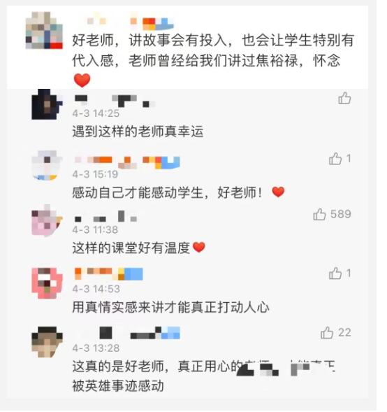 老師課上講焦裕祿故事