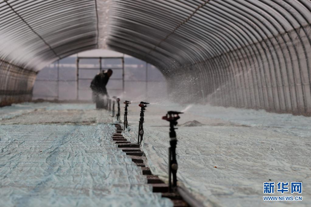 4月6日,河北省唐山市海港經(jīng)濟(jì)開發(fā)區(qū)水稻種植合作社的社員在育秧棚內(nèi)給秧盤澆水。