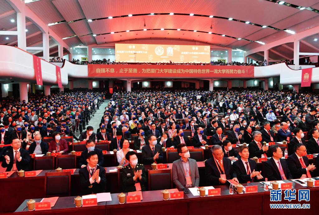 這是廈門大學(xué)舉辦建校一百周年慶祝大會(huì)現(xiàn)場(chǎng)(4月6日攝)。