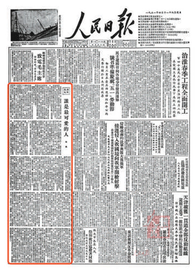 圖為1951年4月11日,《誰是最可愛的人》首發(fā)于人民日報頭版。