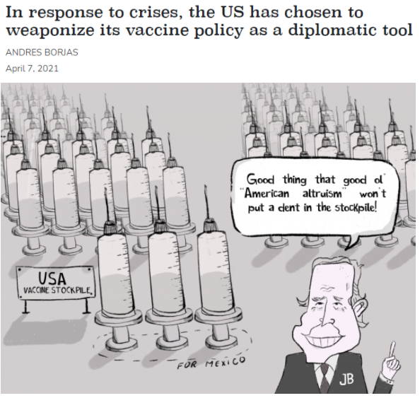 除了分享疫苗的時(shí)間和對(duì)象不明,布林肯的每句話(huà)幾乎都讓人聽(tīng)出了打自己臉的意思。比如,布林肯稱(chēng)美國(guó)“不會(huì)用疫苗換取政治利益”。可實(shí)際上,美國(guó)同意“借給”墨西哥疫苗的條件就是后者必須管好美墨邊境上的非法移民潮。