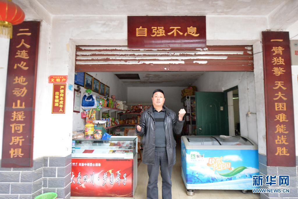 石光武小時(shí)候因事故致右手殘疾,妻子張正芳是聾啞人,他們一起努力,在村里開了一間小賣部。汶川大地震來襲時(shí),石光武的住房和小賣部全部倒塌。在救援隊(duì)伍的幫助下,兩天后他就在路旁搭起兩間過渡房,臨時(shí)小賣部又開張了。
