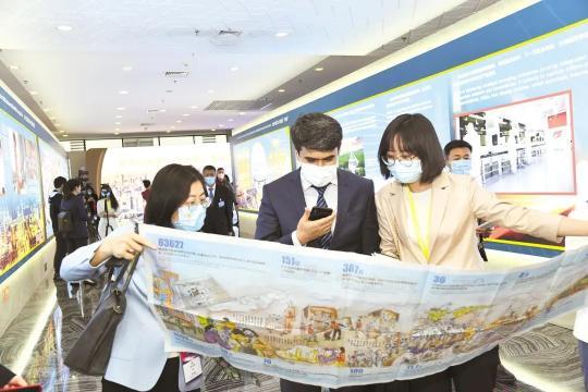 與會嘉賓認真觀展,一件件實物、一幅幅圖片、一組組數(shù)據(jù),引得許多人紛紛豎起大拇指點贊。