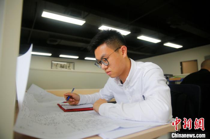 圖為澳門青年建筑設(shè)計(jì)師黎俊鴻在位于珠海橫琴的辦公室內(nèi)工作。 王駿 攝