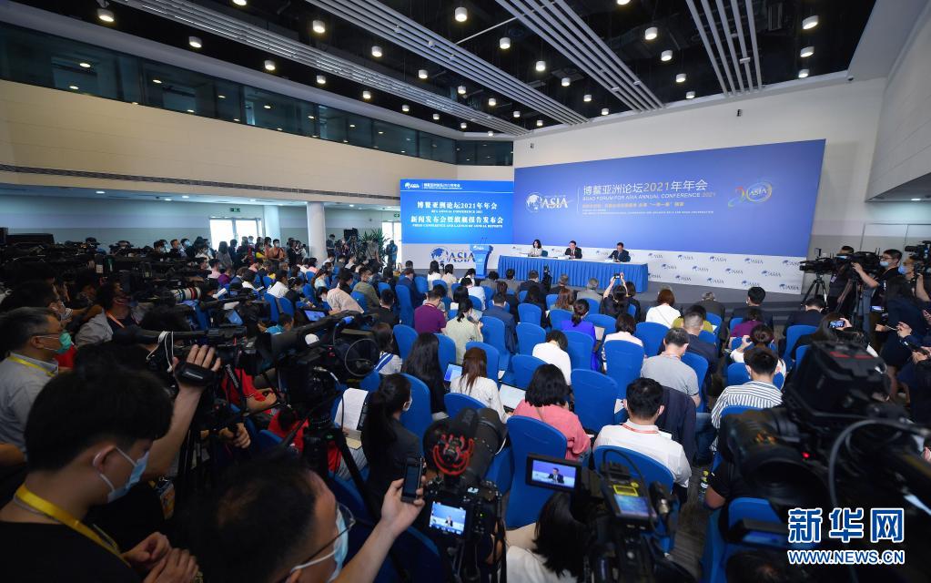 這是博鰲亞洲論壇2021年年會(huì)新聞發(fā)布會(huì)現(xiàn)場(chǎng)(4月18日攝)。