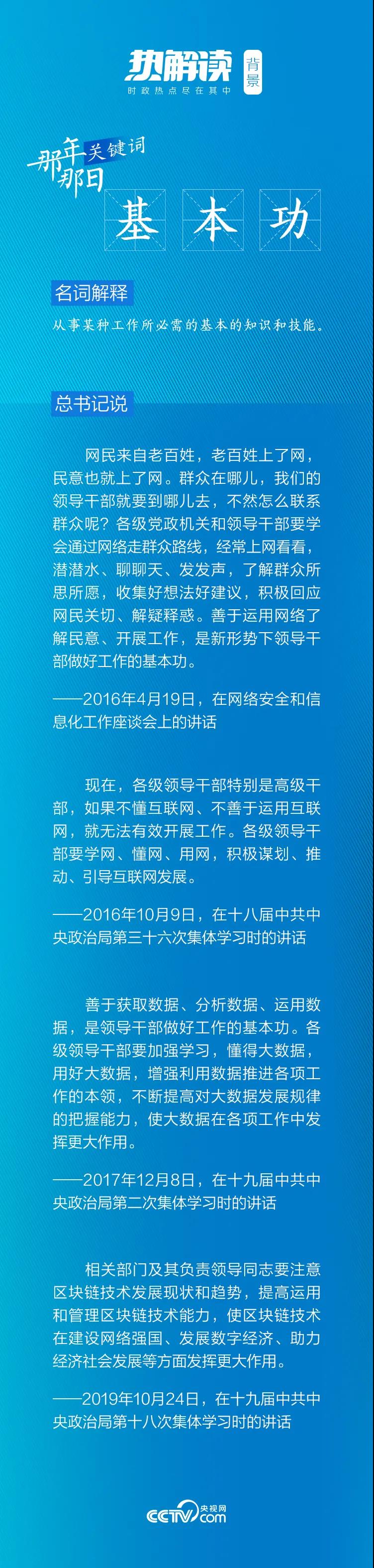 本文關(guān)注到,這次重要講話中所提的“基本功”,之后總書記又多次提及,并反復(fù)強調(diào)互聯(lián)網(wǎng)時代領(lǐng)導(dǎo)干部“運用網(wǎng)絡(luò)”的重要意義。