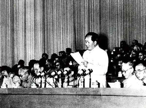 1956年9月15日至27日,中國共產黨第八次全國代表大會在北京舉行。大會提出的黨和國家主要任務是集中力量發(fā)展生產力的思想,對于社會主義事業(yè)的發(fā)展和黨的建設具有長遠的重要的意義。圖為毛澤東在大會上致開幕詞。新華社發(fā)