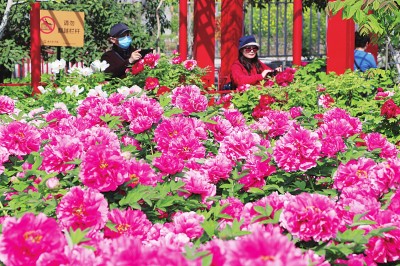 游客在江蘇沛縣楊屯鎮(zhèn)南山牡丹園觀景賞花,鄉(xiāng)村旅游發(fā)展持續(xù)帶動(dòng)農(nóng)民增收。張?bào)w會(huì)攝/光明圖片