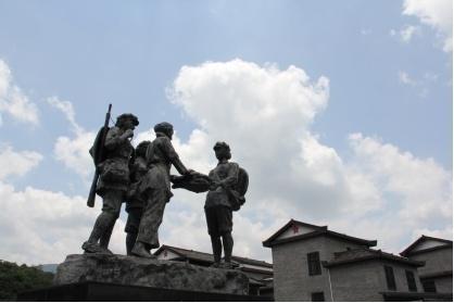 湖南省郴州市汝城縣沙洲村的“半條被子”雕塑。(鄺西曦攝)
