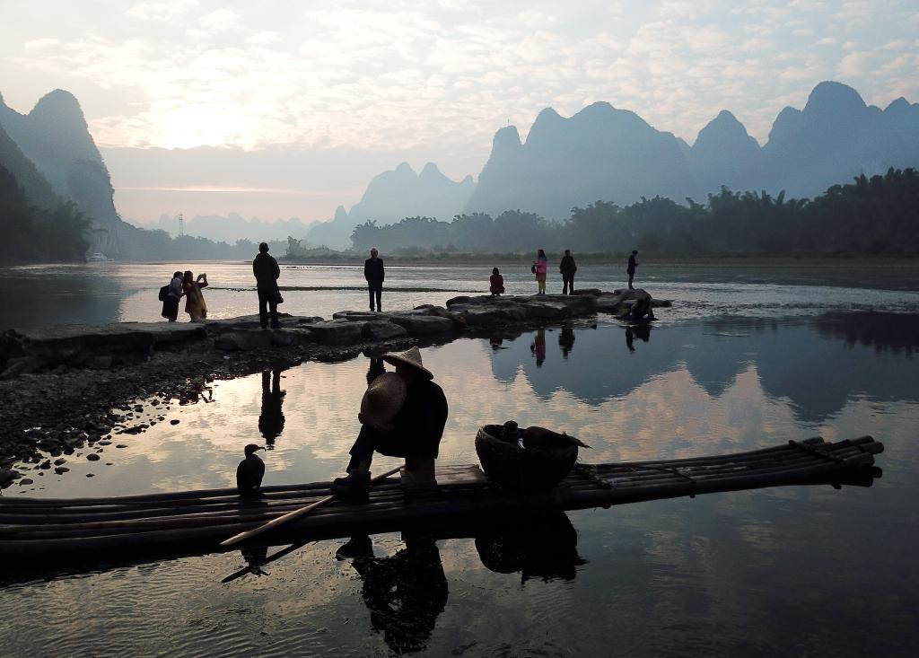 漓江之美,美在天然,一派人與自然和諧共生的美好景象。陽朔縣興坪鎮(zhèn)漁村村民秦升是漓江上的一名筏工。乘著父輩用竹子制作的排筏,在漓江上捕魚捉蝦,到河對岸上學,是他兒時美好的記憶。