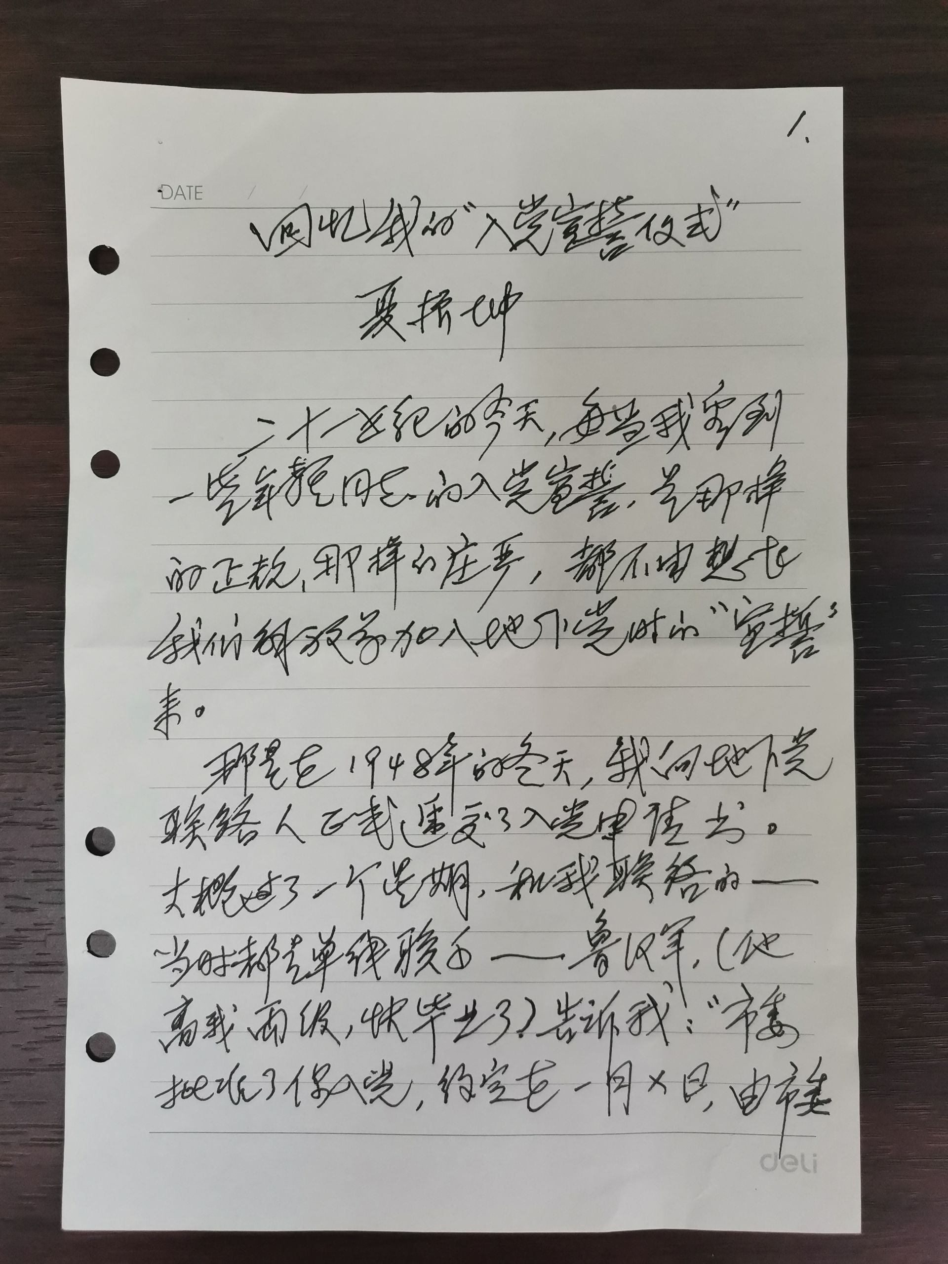 夏老手寫版“回憶我的 ‘ 入黨宣誓儀式’”。湖北省社會科學院 供圖