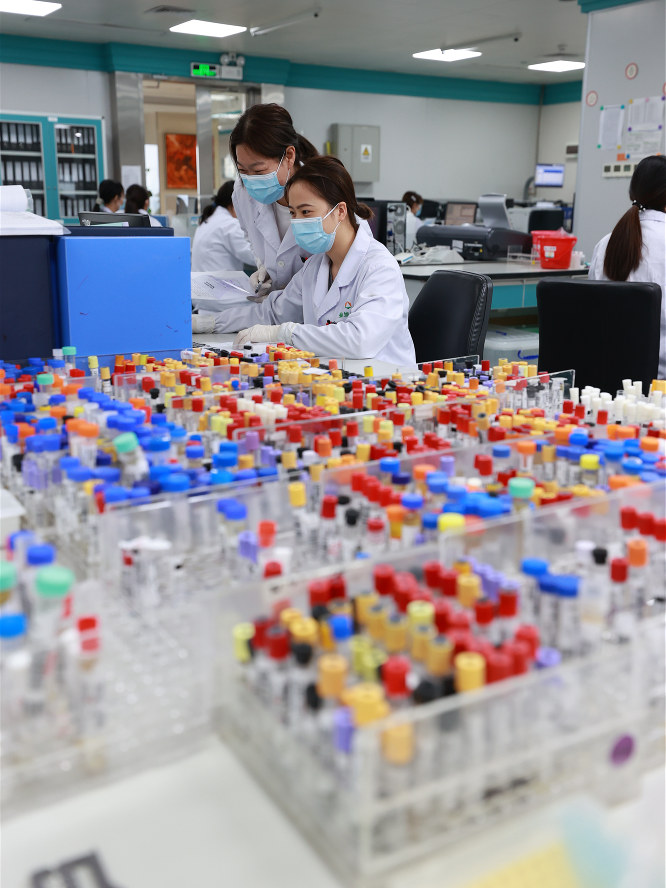 4月20日,廣州生物島金域醫(yī)學(xué)公司內(nèi),實(shí)驗(yàn)人員正在工作。人民日報(bào)記者 張武軍攝