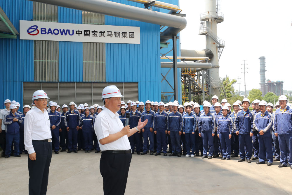 ↑2020年8月19日上午,習(xí)近平在安徽馬鞍山市中國(guó)寶武馬鋼集團(tuán),同企業(yè)勞動(dòng)模范、工人代表親切交流。